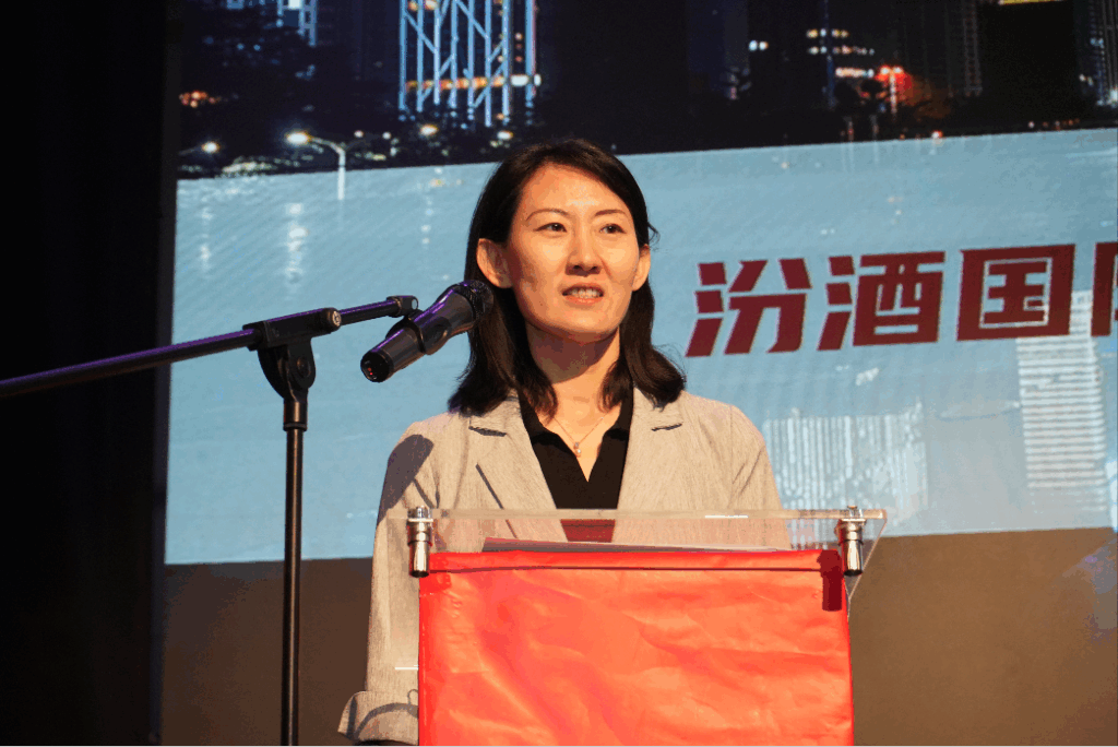 活动主持人张靓婧。汾阳市人民政府办公厅主任张义在致辞中表示,当前汾阳市正致力于打造以“汾酒专业镇”为核心的白酒产业新高地,通过原产地保护、标准化工艺、国际认证与品牌战略等多方面发力,推动汾酒产业高质量发展,并期望以酒为媒,深化与西班牙在产业链、市场拓展、文化旅游等方面的全面合作。