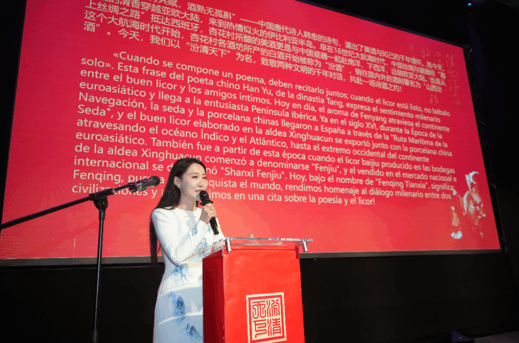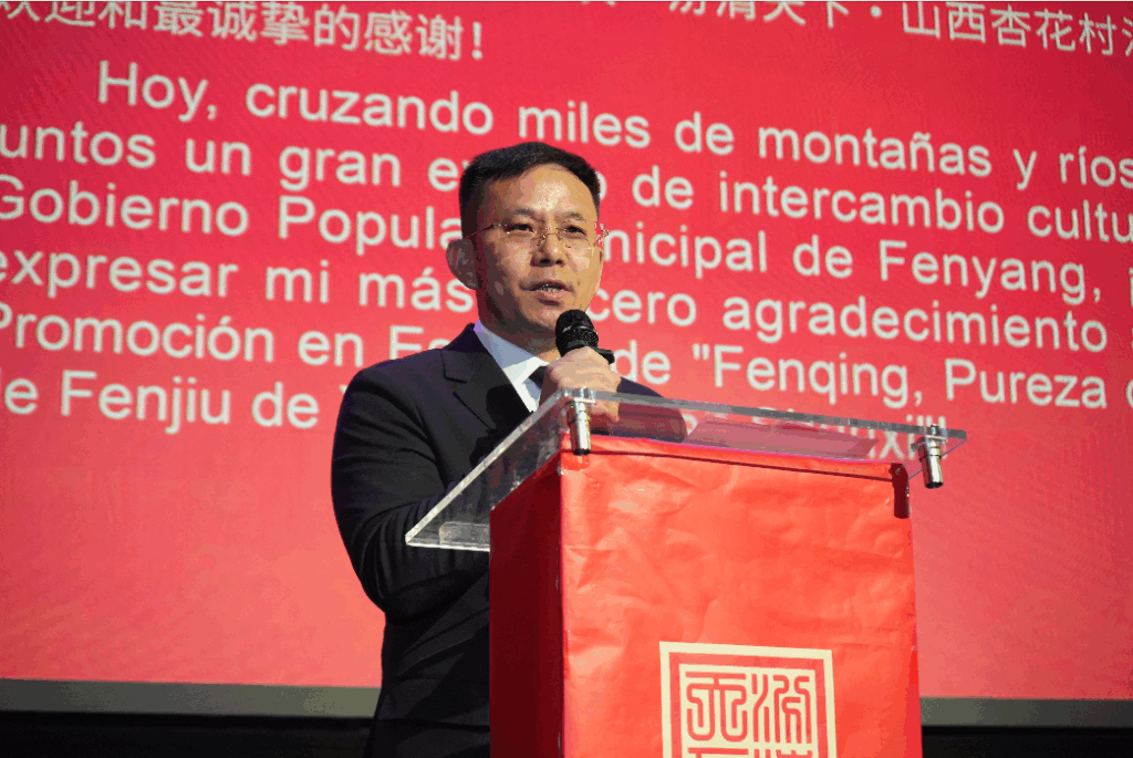 汾阳市副市长任万伟在致辞中指出:“杏花村是中华酒文化的重要发源地,汾酒是享誉千年的国之瑰宝。我们希望借助此次推介活动,让西班牙朋友真正了解汾酒、爱上汾酒,也欢迎更多西班牙企业走进汾阳、走进杏花村,共谋发展新机遇。”